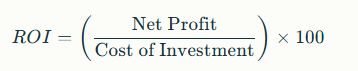 At its simplest, ROI is calculated as: